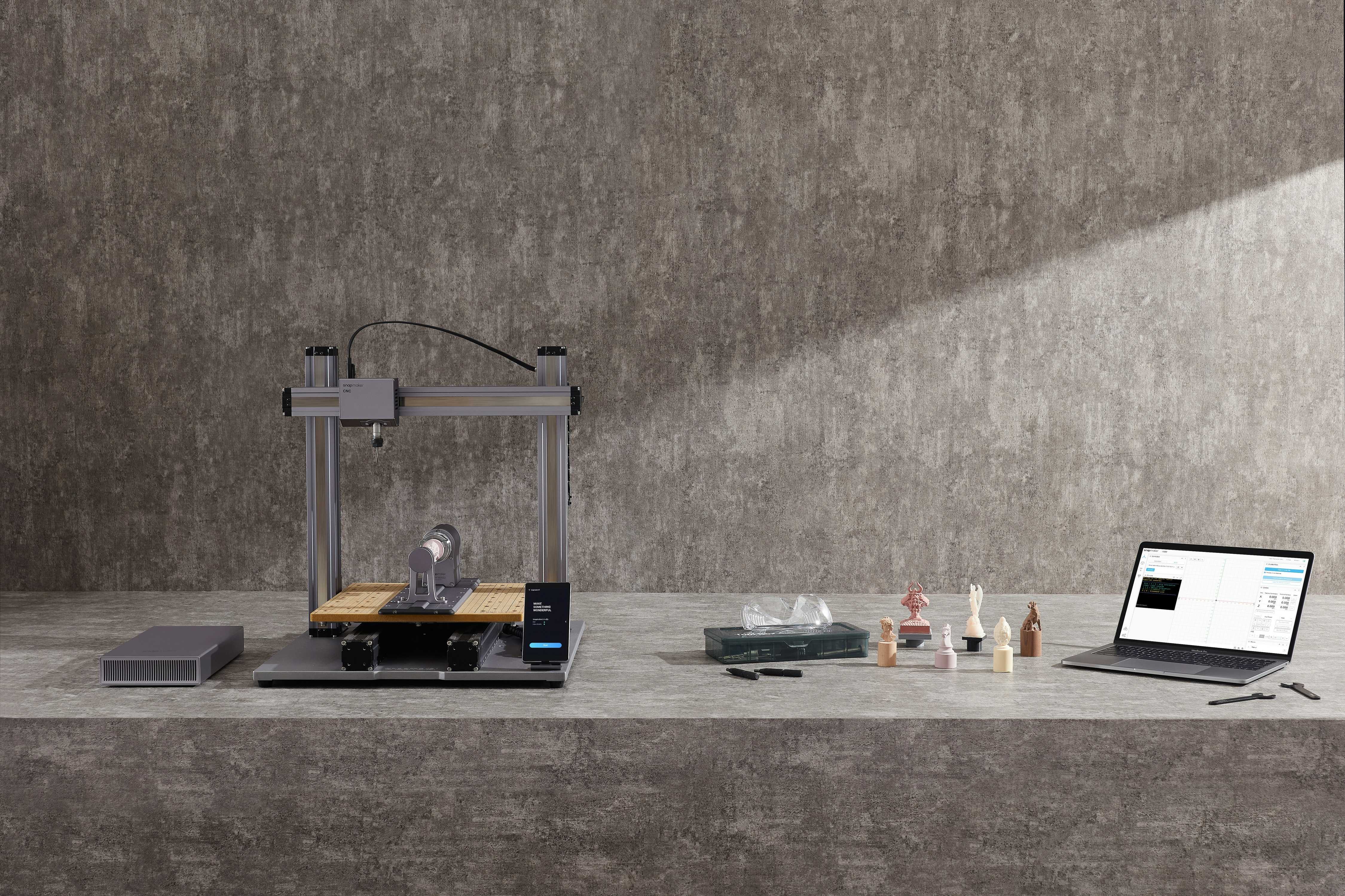 Features: Motorized Z, dual guide beams, safety key & E-stop, desktop control panel